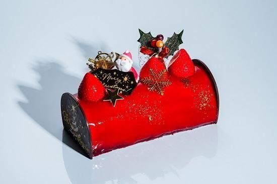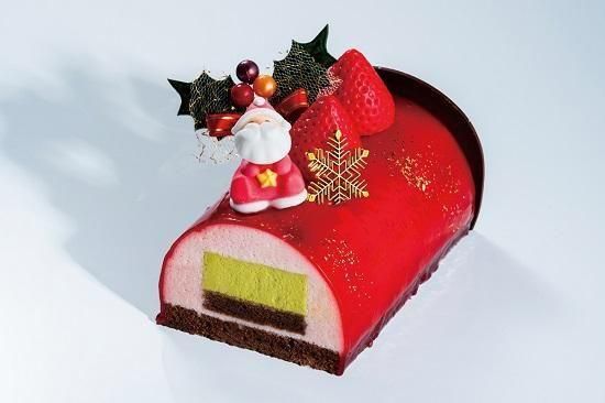 濃厚なピスタチオのババロアとほどよい甘さのストロベリームースが、まろやかな口どけの中に爽やかな風味を重ねます。サンタクロースのトッピングと聖樹のデコレーションで賑やかに。